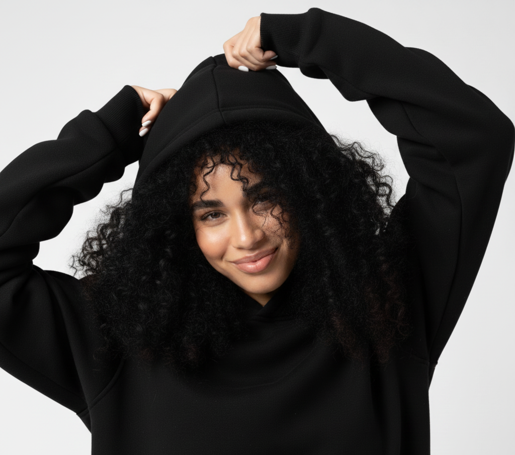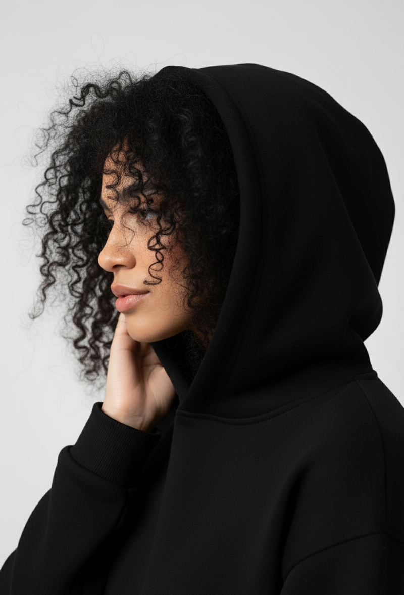 We use an 80% cotton and 20% polyester blend to combine softness and breathability with added durability and shape retention. The cotton keeps the hoodie comfortable and premium, while the polyester prevents shrinking, fading, and sagging over time.