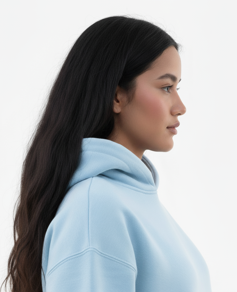 We use an 80% cotton and 20% polyester blend to combine softness and breathability with added durability and shape retention. The cotton keeps the hoodie comfortable and premium, while the polyester prevents shrinking, fading, and sagging over time.